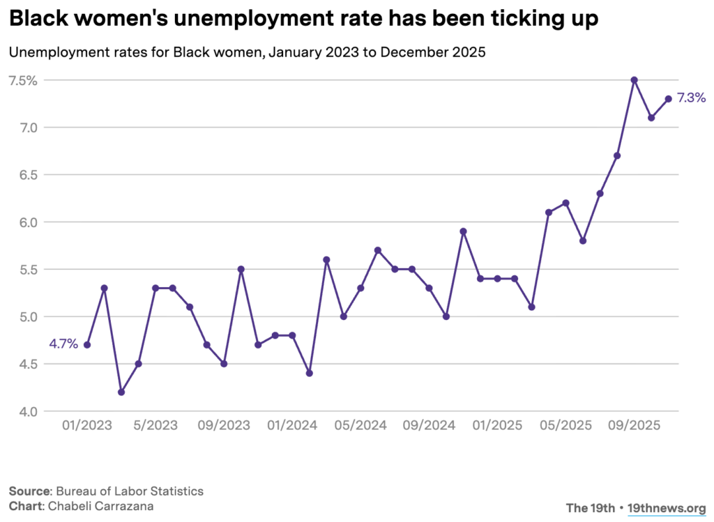 According to reporting out this week from The 19th, unemployment rates for Black women rose to 7.3% in 2025 — “a level comparable to white women’s unemployment during the worst moments of the Great Recession.”